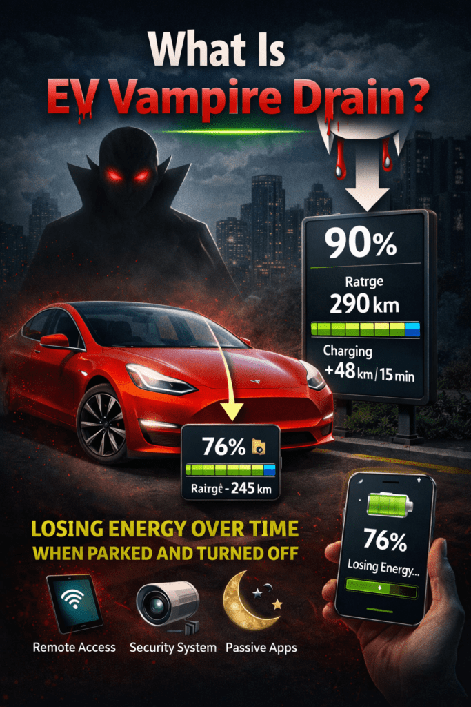 EV vampire drain is a normal and expected behavior in modern electric vehicles. Because EVs maintain background systems such as connectivity, security, and battery monitoring, small amounts of energy are consumed even while parked.